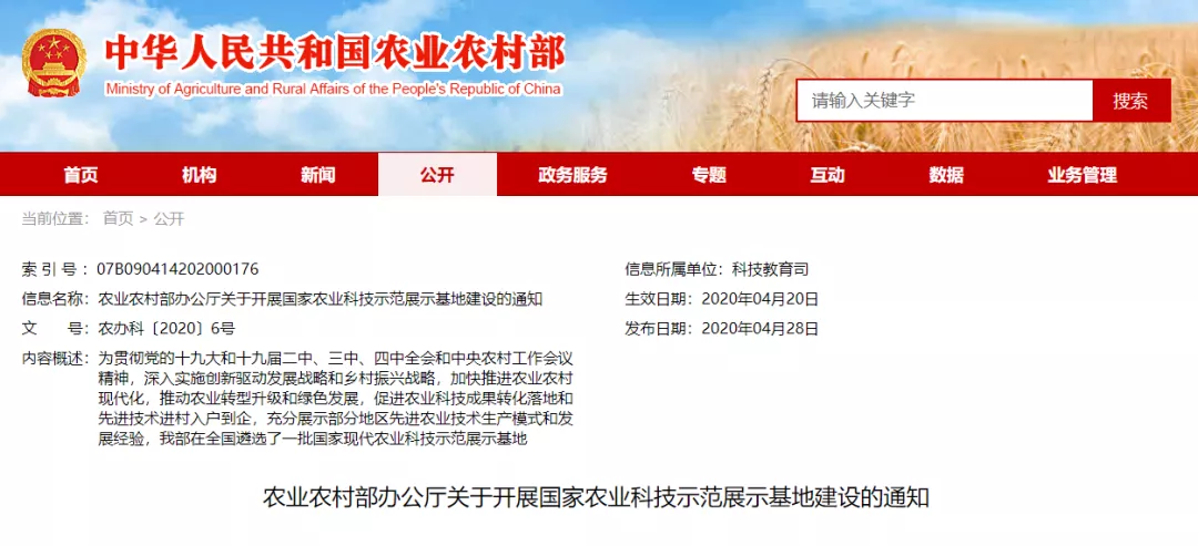 农业农村部办公厅近日发布关于开展国家农业科技示范展示基地建设的通知。