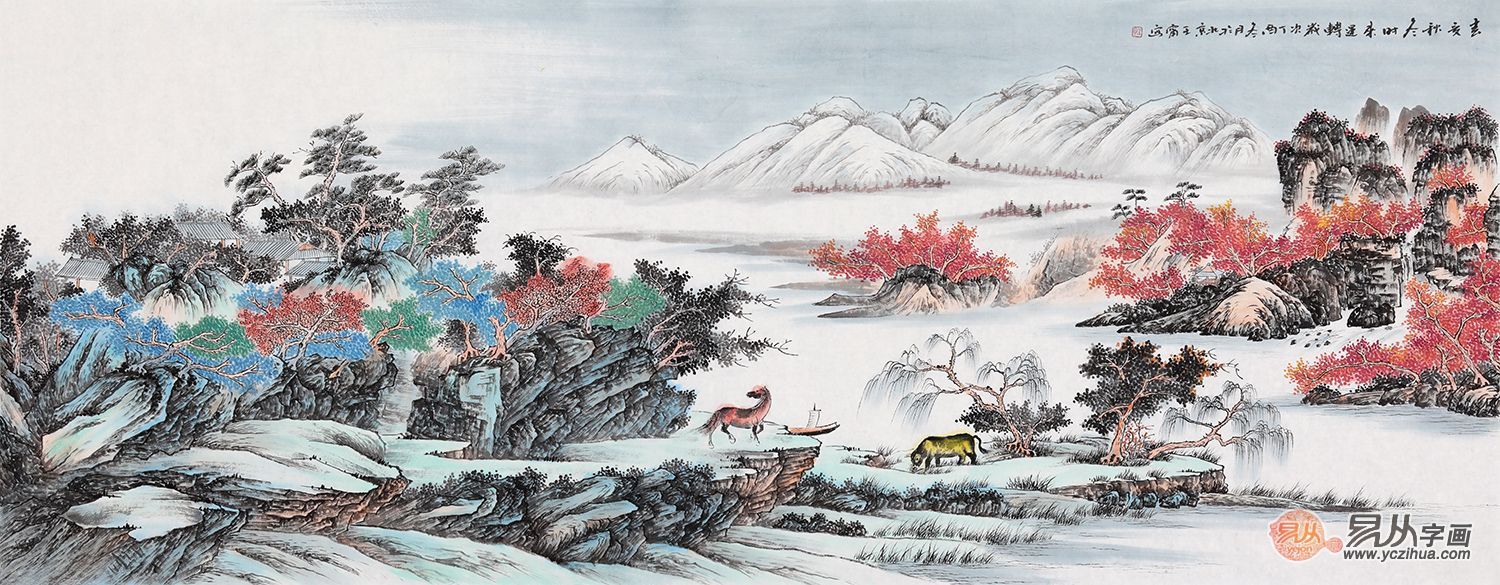 风水学绘画佳作 王宁山水画《春夏秋冬时来运转》