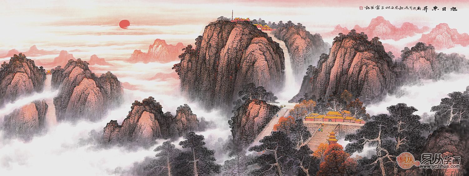 五岳独尊大靠山 王宁六尺山水画作品《旭日东升》